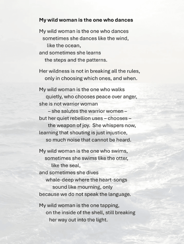 and dreams of swimming in the sea,but here she is again, in the wood.